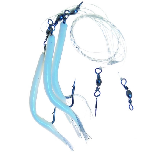 Weiße Röhren mit gebundenen Fransen. Absolut der beste Köder für Kabeljau, Wittling und Keler. Dieses Marine-Rig ist für das Pilken ausgelegt. Wenn Sie großen Kabeljau bevorzugen, verwenden Sie dieses Rig.