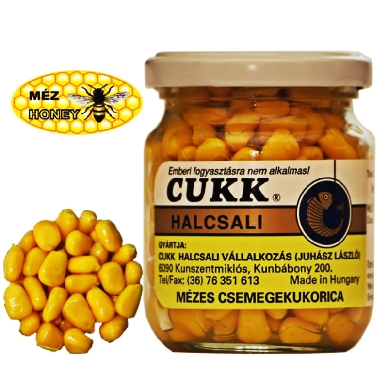 Wybrana kiszona kukurydza bez marynaty, barwiona. Różne rodzaje specjalnej kukurydzy do połowu karpi. Bardzo dobrze trzyma haczyk, nie pęka przy nabijaniu. Twardość i odporność na zahaczenie ziaren są idealne. Po otwarciu i starannym zamknięciu mogą być używane nieprzerwanie przez wiele miesięcy bez ryzyka zepsucia. Zastosowane barwniki są dopuszczone do kontaktu z żywnością, bezpieczne dla zdrowia i środowiska.