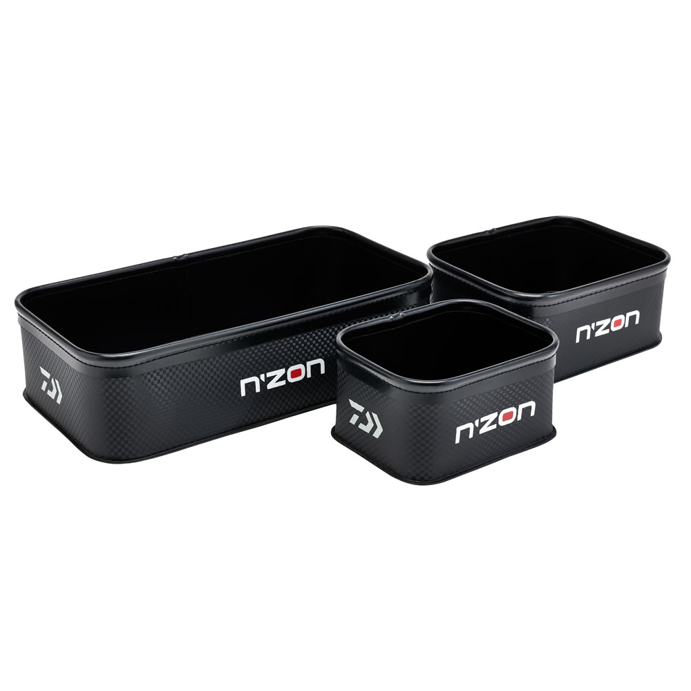 Zestaw zawiera trzy duże pojemniki na przynęty, zanętę, robaki, pellet itd. Duży pojemnik dobrze nadaje się na zanętę gruntową, która trafi do koszyka. Oba mniejsze pojemniki mieszczą się w większym.