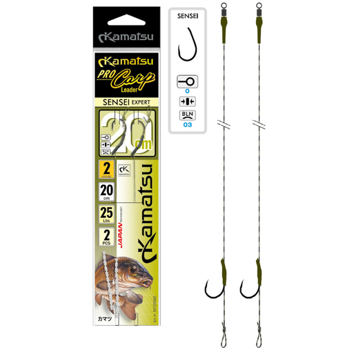 Speciální návazce určené zejména pro lov kaprů metodou "na vlas". Byly testovány na mnoha ulovených kaprech v celé Evropě a fungovaly dobře za všech podmínek. Návazce Kamatsu Pro Carp jsou vynikající volbou pro všechny rybáře lovící velké kapry díky použití nejkvalitnějších komponent. Šňůra a uzel návazce zaručují, že návnada vypadá přirozeně a není podezřelá ani pro ty nejopatrnější ryby. K montáži byly použity pouze vybrané háčky a obratlíky Kamatsu, aby se předešlo nepříjemným překvapením při rybolovu. Háčky jsou vázány nejúčinnější metodou - takzvaným „bezuzlovým uzlem“. Obratlíky jsou navázány zvláštním uzlem který rozloží zatížení na celý uzel, spíše než na bod dotyku s obratlíkem. Návazce jsou postaveny na klesajících šňůrkách barevně uzpůsobených pro zaručení maskování u většiny typů dna. Ideální pro perfekcionistické rybáře, kteří mají rádi své hobby.