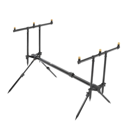 Značka Zfish představuje stojan, který nabízí širokou škálu nastavení a využití. Hrazdy na tři pruty jsou uchyceny na dvě teleskopické tyče se zapichovacími hroty, které můžete snadno vyjmout a použít jako vidličky s hrazdou bez stojanu.Hlavní předností stojanu je velmi rychlé sestavení a stabilita díky čtyřem nastavitelným nohám, ale zároveň velkou výhodou je skladnost a nízká hmotnost.