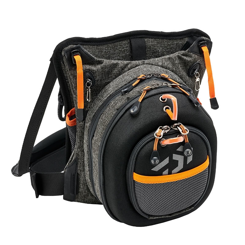 Navrženo pro nošení na hrudi pro okamžitý přístup ke všem nezbytným předmětům. Čtyři oddíly; jeden se zajištěným otevřeným přístupem, jeden se zipem a rýhovanou podložkou pro uschování nástrah a mušek plus dvě tvrdé skořepiny (na zip). Dva zabudované zatahovací zingery umožňují rychlý přístup k peanům a kleštím. Pohodlný neoprenový popruh na krk a nastavitelný bederní pás zajišťují bezpečné a snadné nošení, zatímco dvě spony na karabinu umožňují integraci do ramenních popruhů batohu.
