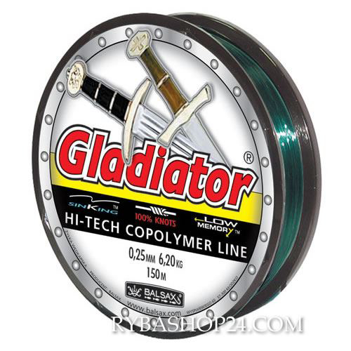Gladiator je vlasec doporučovaný rybářům, kteří dávají přednost různým metodám lovu na udici. Je velmi silný a pevný v uzlech. Zelená barva jej skvěle maskuje, zejména v oblasti rákosí a vodních rostlin.