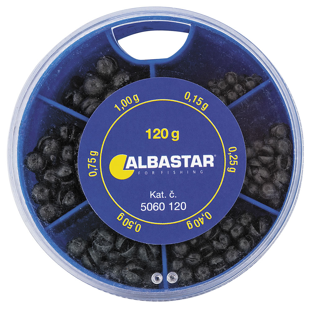 Sada jemných dělených olověných broků v praktické krabičce na plavanou.