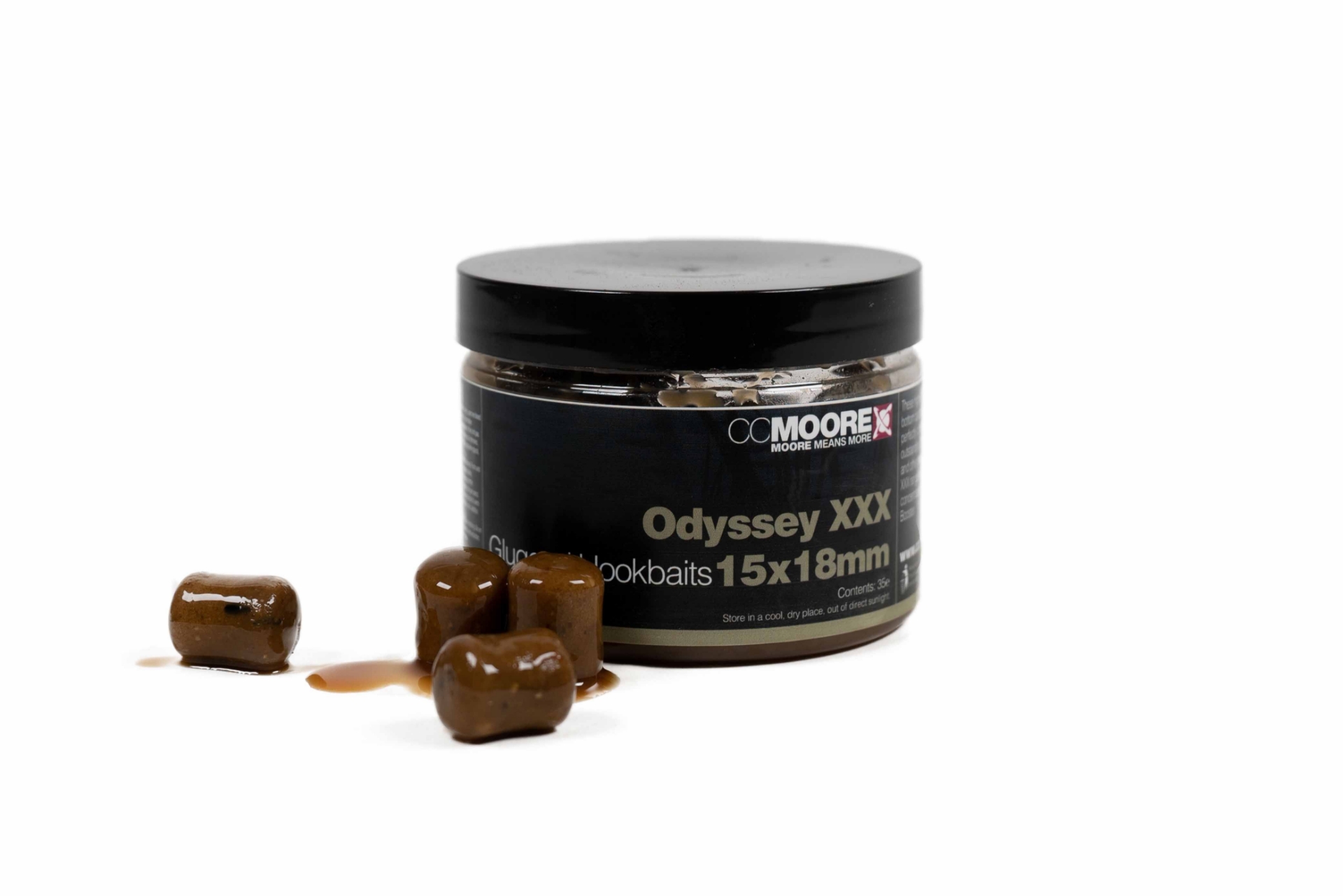 CC Moore Odyssey XXX v dipu je legendou, která redefinuje úspěšný lov velkých ryb. Toto boilies ve tvaru dumbellu (15x18 mm) je postaveno na mixu rybích mouček a obsahuje neuvěřitelných 10% GLM extraktu (výtažek z novozélandské slávky zelenoústé). Nástrahy jsou dlouhodobě nasyceny v originálním Odyssey XXX dipu, což z nich dělá pachovou bombu s okamžitým účinkem. Má hluboký, přirozeně mořský a kvasnicový profil, kterému trofejní kapři okamžitě důvěřují po celou sezónu.