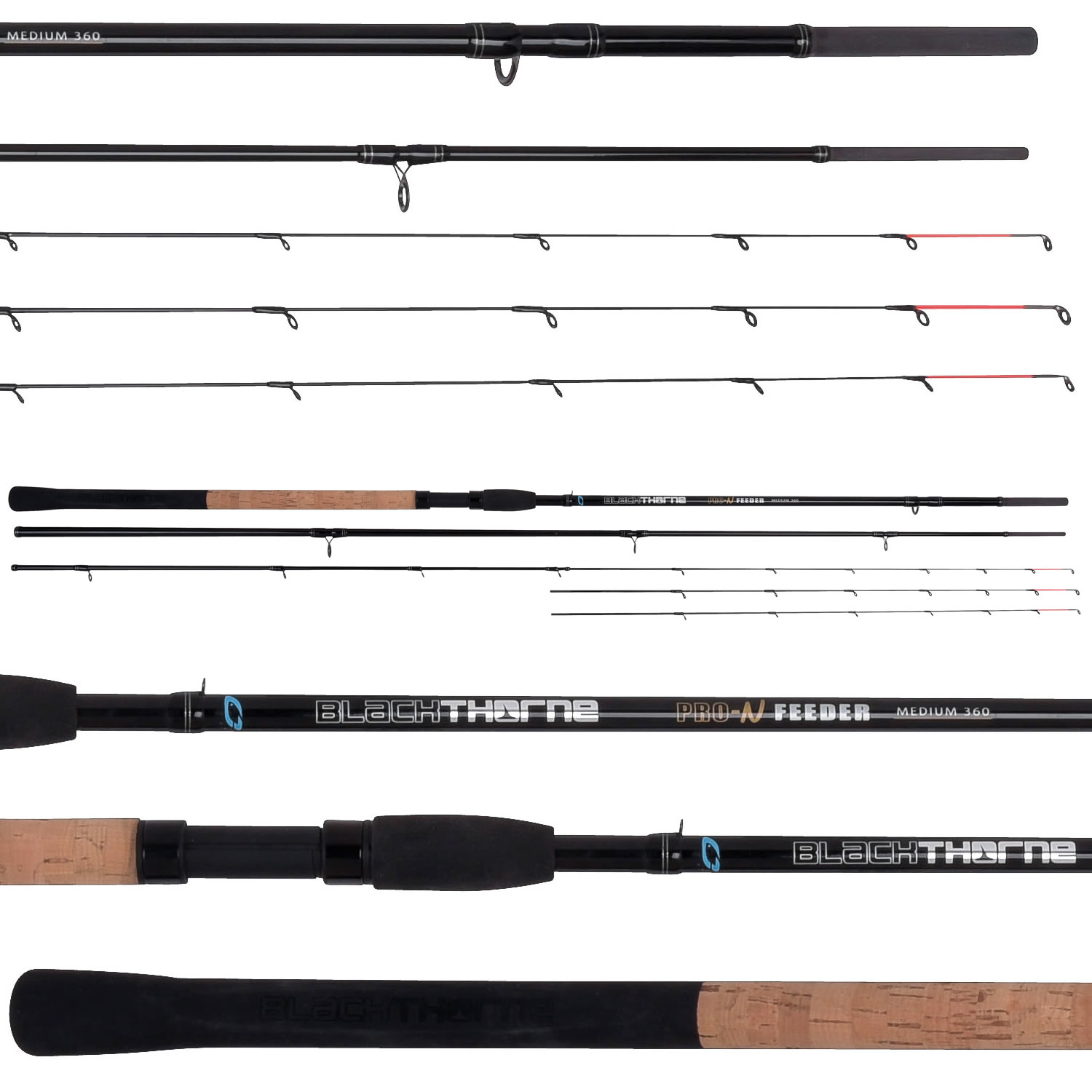 Blackthorne Pro N Feedery medium nabízí velmi dobré vrhací a zdolávací vlastnosti. Tím jsou tyto pruty velmi univerzální při využití. 3 carbonové špičky velikosti M (koncového průměru 2,8mm) nabízí dobrou registraci záběru i při vyšším tlaku na vlasec na střední vzdálenosti, díky zvýšenému koncovému průměru. Blank je rozdělen do 3 shodných dílů včetně špičky, což vede ke krátké přepravní délce. Rukojeť je vyrobena z kombinace korku a pěny, má přizpůsobenou délku, a plochý díl, na kterém si paže při zdolávání pohodlně odpočine. Dostupné v 3,60m s vrhací zátěží 20-50g a v 3,75 m s vrhací zátěží 30-60g.