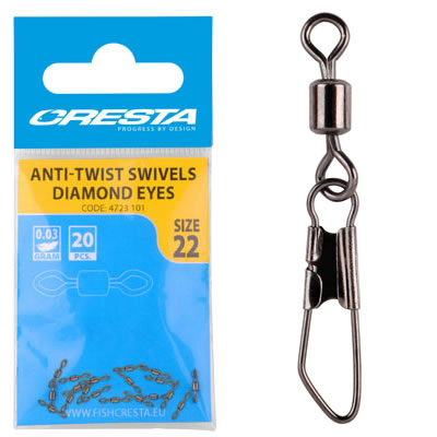 Cresta nyní nabízí kompletní řadu obratlíků. Vyrobili jsme speciální řadu nejoblíbenějších obratlíků přizpůsobených nejmodernějším rybářským technikám. Jsou zde 4 různé typy v kombinaci s krmítky. Provedení a kvalita je v nejvyšším standartu, abyste mohli s důvěrou nahazovat jedno za druhým. Pro připojení na délku háčků jsou také 4 typy. Například speciální Diamond Shape, který zajišťuje, že i ten nejtenčí vlasec drží na karabince správnou pozici. Každý Cresta protizkrutný obratlík snižuje překroucení na minimum.