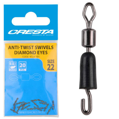 Cresta nyní nabízí kompletní řadu obratlíků. Vyrobili jsme speciální řadu nejoblíbenějších obratlíků přizpůsobených nejmodernějším rybářským technikám. Jsou zde 4 různé typy v kombinaci s krmítky. Provedení a kvalita je v nejvyšším standartu, abyste mohli s důvěrou nahazovat jedno za druhým. Pro připojení na délku háčků jsou také 4 typy. Například speciální Diamond Shape, který zajišťuje, že i ten nejtenčí vlasec drží na karabince správnou pozici. Každý Cresta protizkrutný obratlík snižuje překroucení na minimum.