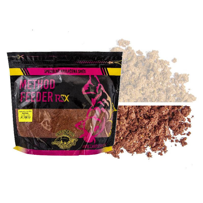Method Feeder RSX se ve svém složení přibližuje spíše k nutričně nasyceným boilies, než klasickým směsím. U příchutě Satan se zde vzájemně doplňují živočišné enzymatické bílkoviny, extrémně intenzivní aromatické látky a pikantní chutě.