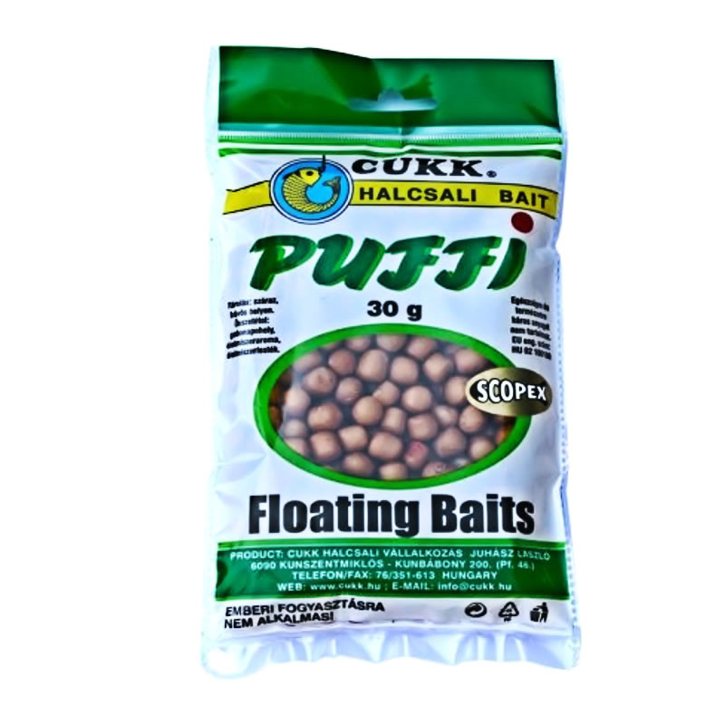 Originál maďarská pufovaná nástraha. Mimořádně úspěšná nástraha na háček. Nezapadne do bahna, neskrývá se mezi rostlinami a oblázky. Obsahuje jen přirozené materiály. Velmi oblíbená a účinná klasika pro lov kaprovitých ryb. Tato návnada je kompaktní a velmi lehká, takže patří k nejúspěšnějším hlavně během celého roku. Pokud je používán malý háček, tato foukaná návnada je schopna plavat, dokonce i tehdy, je-li mimo ní na háčku napíchnut červ nebo zrno kukuřice.