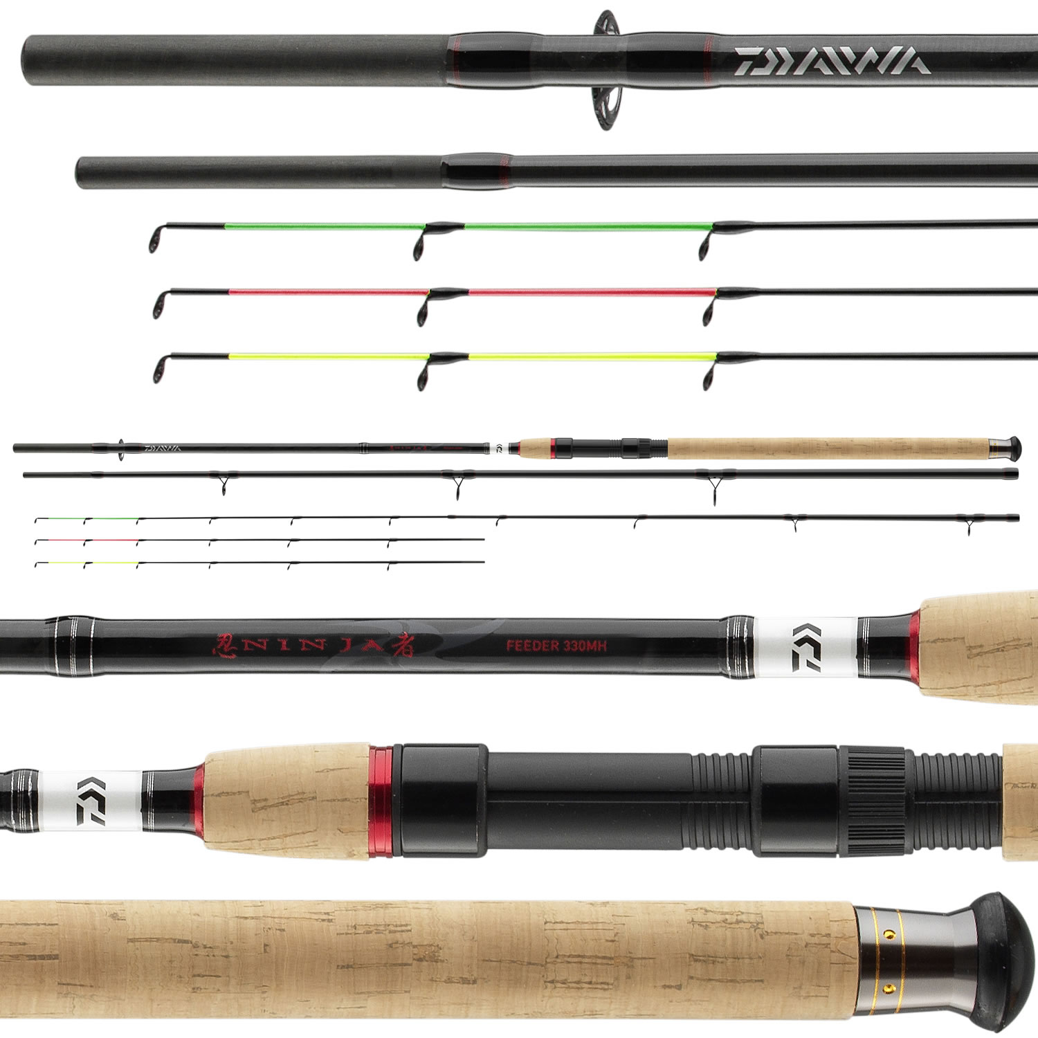 S feederovými pruty Ninja X přináší DAIWA sérii prémiových prutů, které vás naprosto dostanou svým skvělým poměrem cena/výkon. Jsou vyrobené z tenkého a lehkého karbonového materiálu jsou tyto blanky skvěle vyvážené a mají silnou páteř pro dlouhé náhozy. Velké silové rezervy vás podpoří při zdolávání ryby. Heavy a Extra heavy pruty mají velká očka na špičce, což umožňuje použití šokového návazce. Pruty jsou vybaveny titan-oxidovými dvoupatkovými a jednopatkovými očky, dvěma karbonovými špičkami a jednou kompozitovou, korkovou rukojetí a transportním obalem.