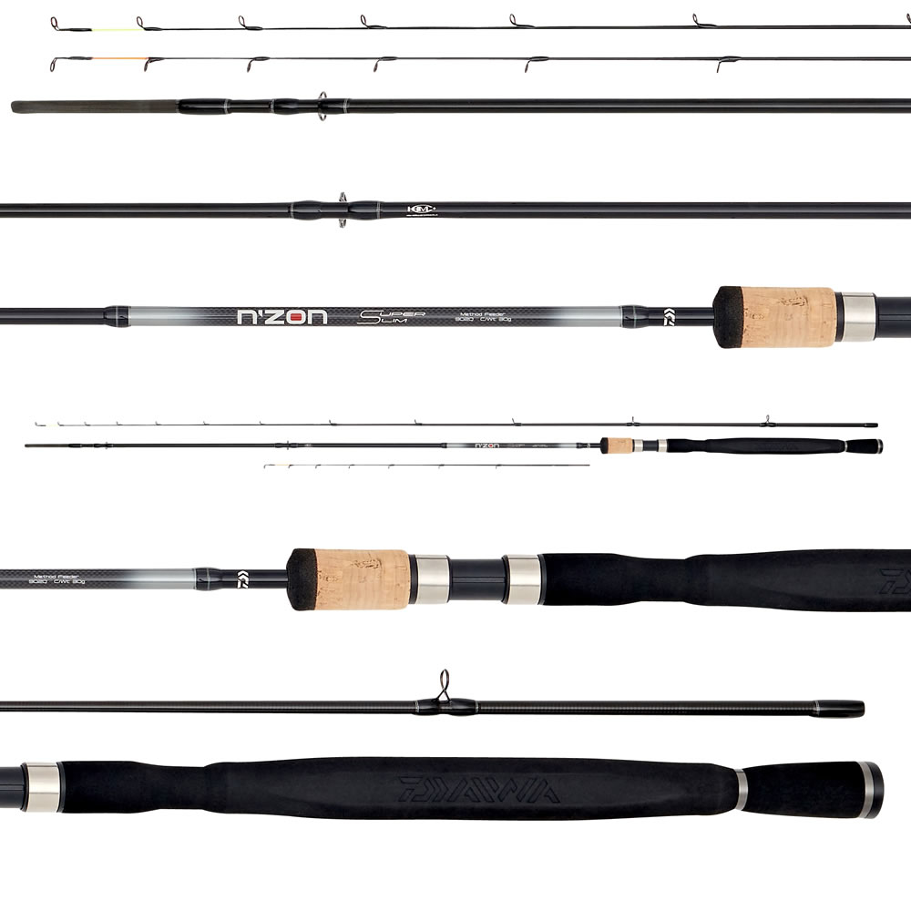 Pruty N‘Zon Super Slim Feeder nabízejí optimální nahazovací vlastnosti a nejvyšší odolnost s velmi tenkým průměrem blanku. Pruty této široké řady jsou mimořádně dobře vyvážené! Blank HMC+ z uhlíkových vláken se okamžitě po náhozu vrací do původní pozice a umožňuje tak obzvláště přesné nahazování. Rukojeť Armlock výrazně zvyšuje komfort při zdolávání silných ryb. Série N‘Zon Super Slim pokrývá všechny druhy moderního feederového rybolovu. Najdete zde pruty pro lehký method feeder a lov na malé i velké vzdálenosti. Také pro lov v silných proudech i pro lov velkých kaprů obsahuje tato řada vhodný model.