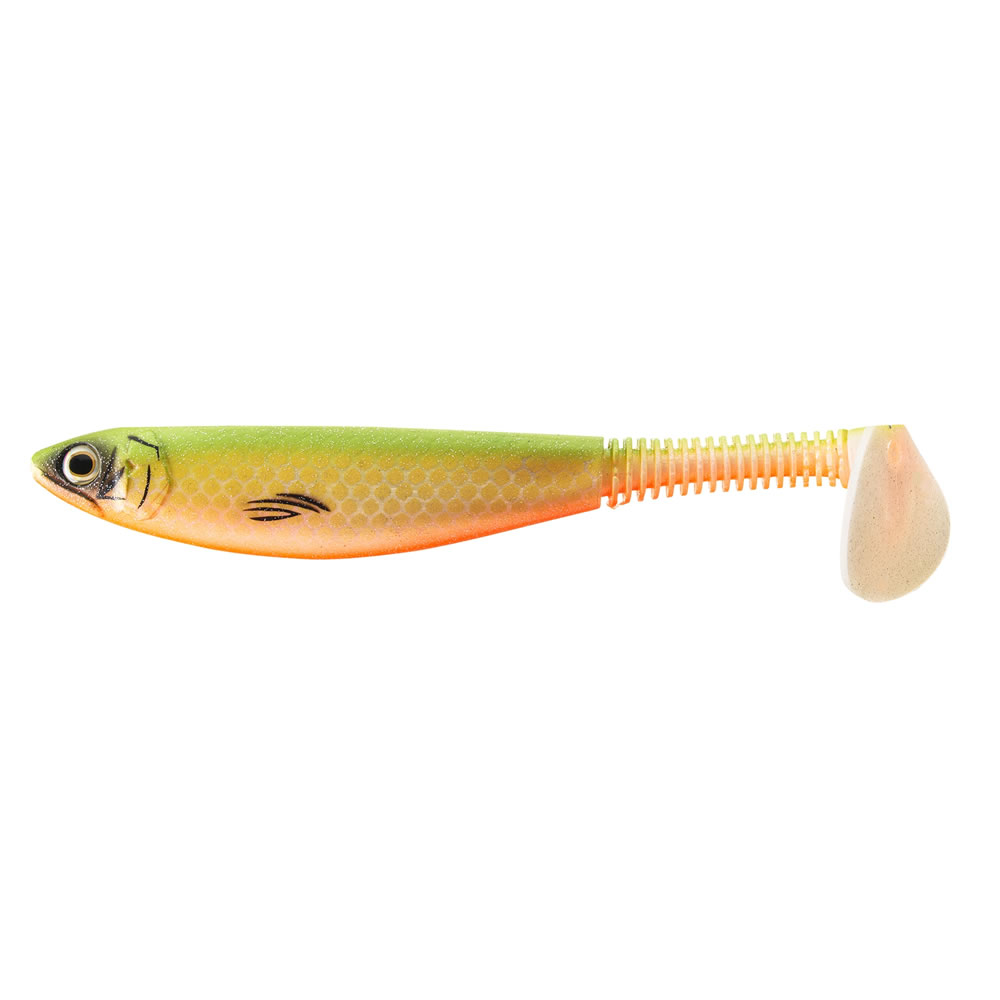 Tato velká gumová nástraha byla speciálně vyvinuta pro lov štik a sumců. Díky speciálnímu žebrování v zadní části tělíčka se krásně hýbe i při velmi pomalé prezentaci – ideální pro lov štik, když je studená voda, nebo tehdy, když jsou dravci líní útočit. Do žebrované části nástrahy můžete přidat atraktor, čím zvýšíte její atraktivitu. Nástraha má při rychlém navíjení krásný, kolébavý chod s výrazným pohybem ocásku. Kompaktní design se hodí pro lov v kombinaci s naším Prorex Shallow-Screw systémem, když chcete lovit v mělkých vodách. Barevná řada byla vybrána našimi kolegy ze Skandinávie a pokrývá široký způsob použití v čisté i zakalené vodě.