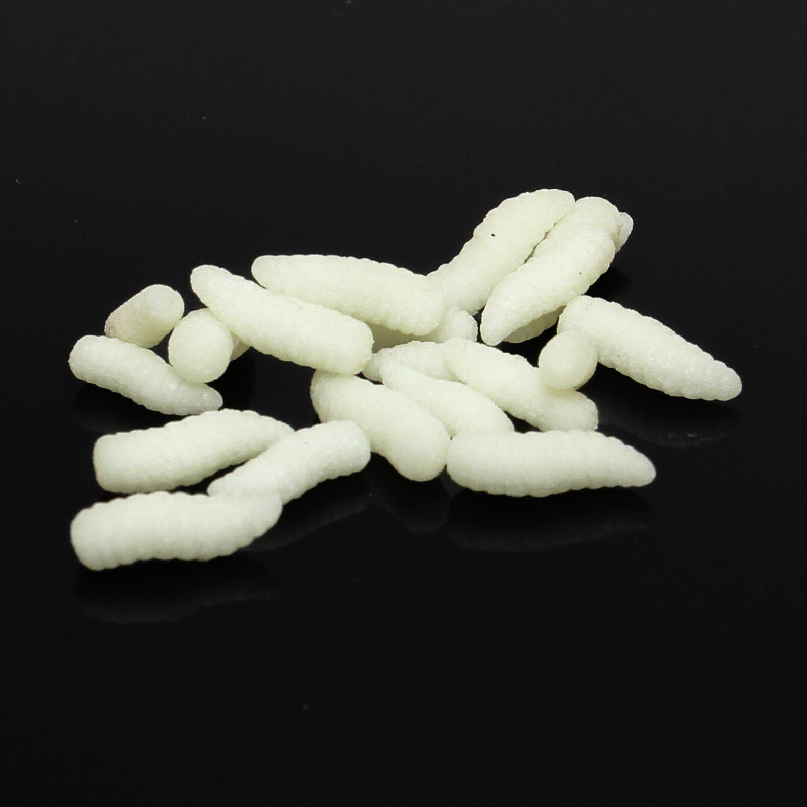 Enterprise Tackle Maggots NEON Green jsou revoluční nástrahou pro noční rybolov. Tyto imitace červů obsahují vysoce účinný fosfor, díky kterému po nasvícení (žárovkou nebo UV) vydrží svítit celou noc (až 8 hodin).