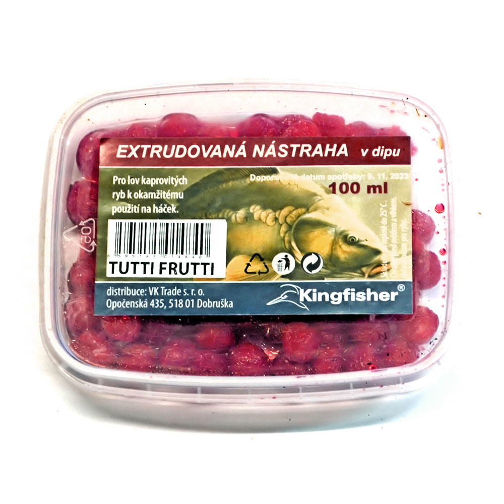 Extudovaná nástraha v dipu je nástraha, která na háčku vydrží mnohem déle než klasické extrudy. Jsou zdrojem značného množství atraktivních látek, které mají daleko větší vábící efekt s delším působením.