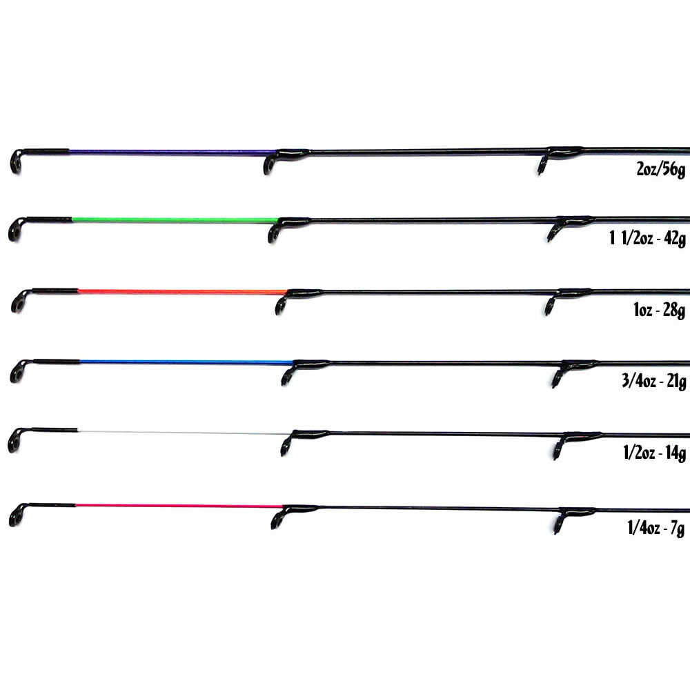 Feederové špičky jsou popsány gramáží, která představuje minimální váhu prázdného krmítka nebo olůvka, kterou byste měli použít, abyste měli jistotu, že špička bude v rovnováze s montáží, např. špička 1oz = minimální zátěž 28 g.