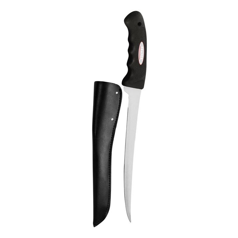 Rybářský filetovací nůž pro bezproblémové filetování ryb všech velikostí. Čepel je vyrobena z karbonové oceli s laserem broušeným ostřím. Nůž má protiskluzovou, ergonomicky tvarovanou gumovou rukojeť a trvanlivé nylonové pouzdro pro bezpečné používání.