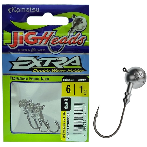 Kvalitní jigové hlavičky se dvěma drážkami proti posunutí nástrahy a přesnou gramáží. Háčky jsou trvanlivé, pružné s dokonale profilovaným tvarem. Široká škála velikostí a gramáží umožňuje použití těchto hlaviček téměř za všech podmínek.