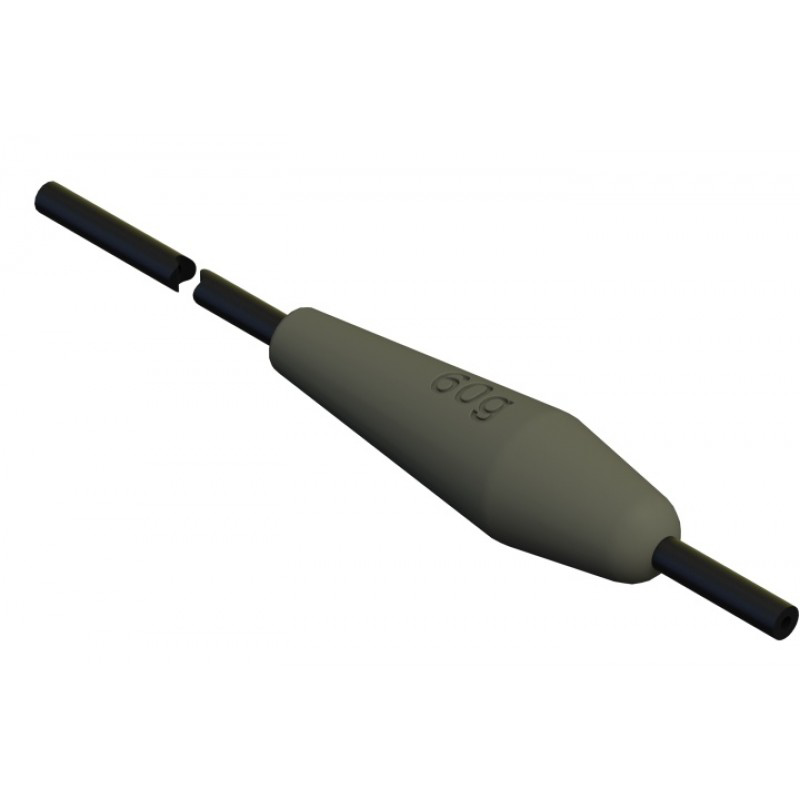 Průběžná, výměnná olověná zátěž vhodná zejména na dlouhé hody a tekocí vodu.