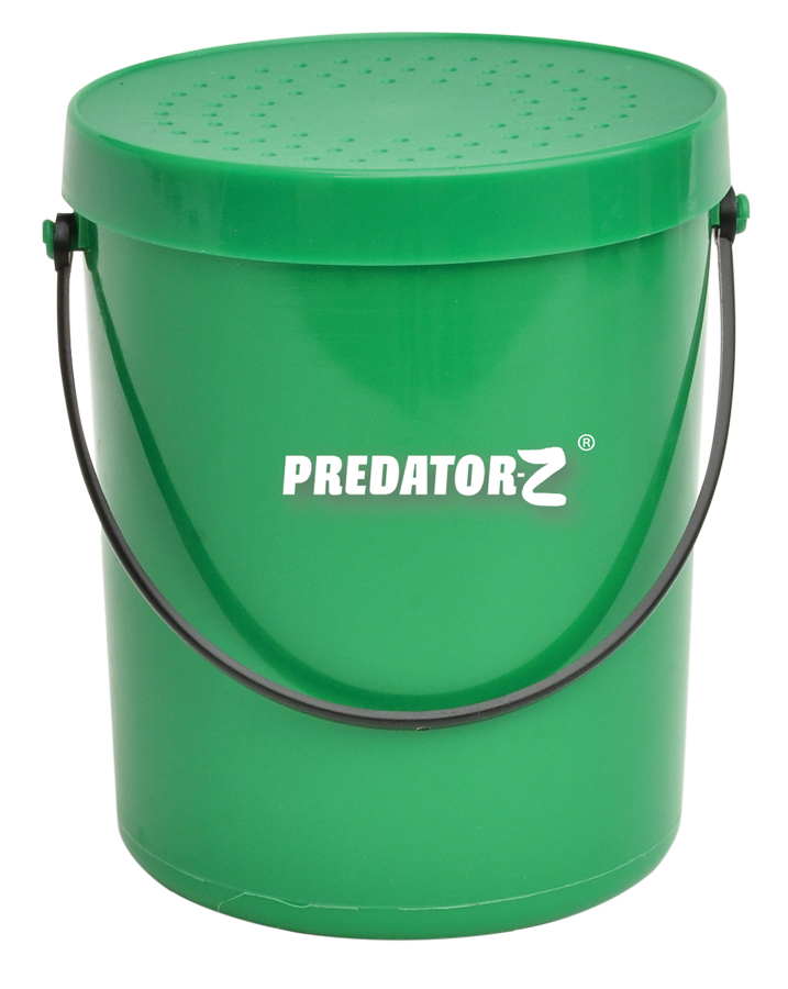 Klasický plastový kbelíček pro uchovávání a transport živé nástrahy (kostní červi, žížaly, pinkies). Víčko je perforované pro přísun vzduchu, ale otvory jsou dostatečně malé, aby červi neunikli. Víko těsní a pevně drží.