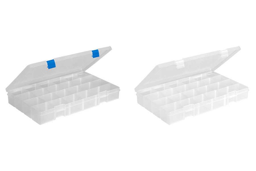 Odolný plast, konfigurovatelné přihrádky. Ideální pro uspořádání rybářského kufru.
