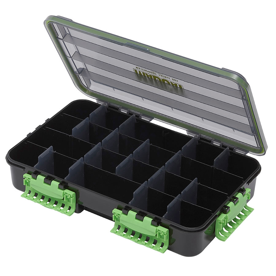 Pěkný, velký a hluboký box na bižuterii, který je zcela voděodolný díky silikonovému těsnění na víku a širokým sponám, které rovnoměrně rozdělují tlak. Víko v kouřově šedé barvě zabraňuje přílišnému zahřátí uloženého (kovového) vybavení od slunečního záření. Verze se třemi pevnými oddělovači je určena na malé (koncové) vybavení a je dodávána s malými odnímatelnými přepážkami, kterými je možné upravit rozložení přihrádek v boxu. Box bez pevných oddělovačů je také dodáván s odnímatelnými přepážkami, kterými je možné box rozdělit na tři přihrádky.