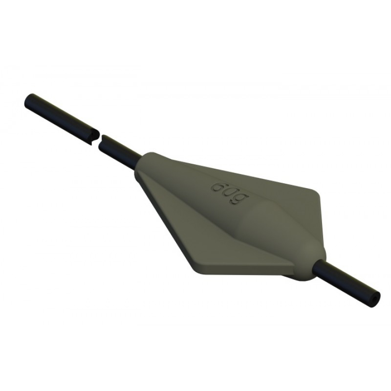 Průběžná zátěž určená především pro delší přesné hody při rybolovu na položenou na boilies ve stojatých vodách. Pevné delší vedení vlasce zabraňuje zamotávání návazce okolo kmenového vlasce a zdokonaluje volný průběh zátěží.