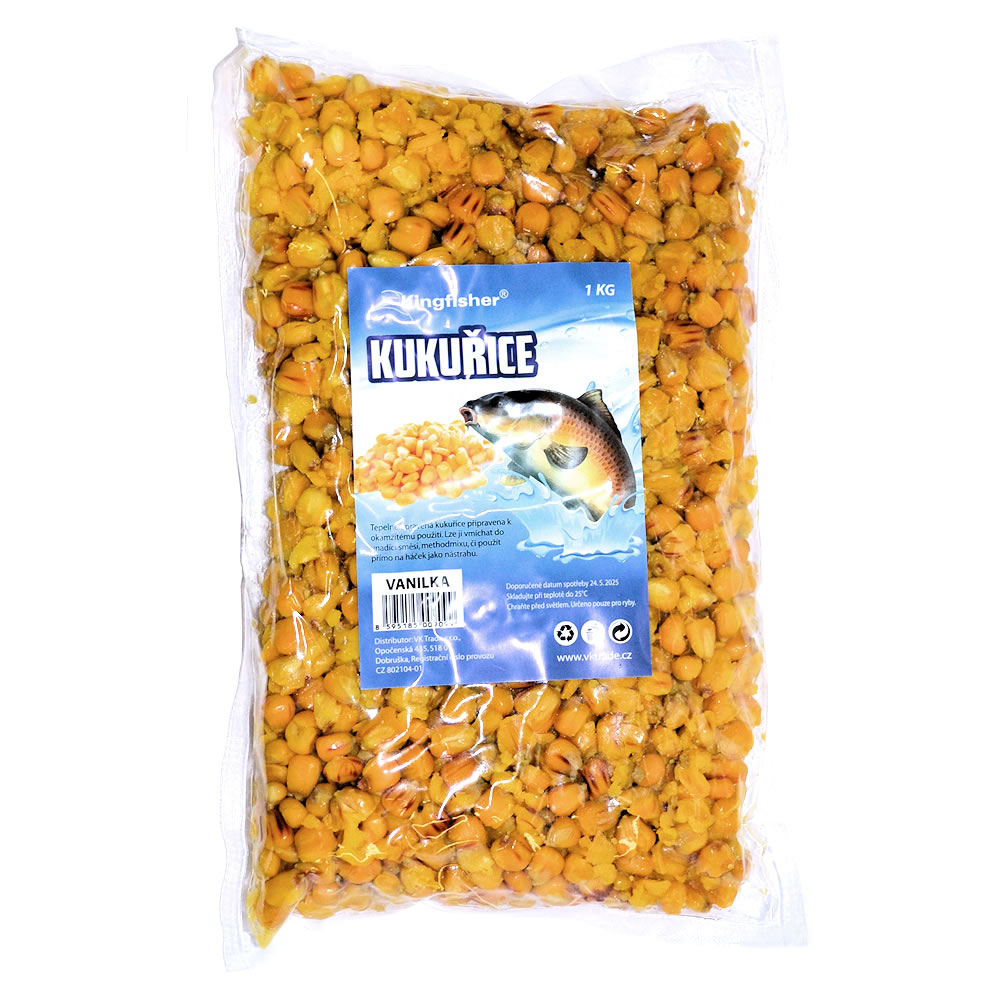 Tepelně upravena ochucená kukuřice k okamžitému použití. Lze ji použít přímo na háček jako nástrahu, případně vmíchat do vnadící směsi či method mixu.