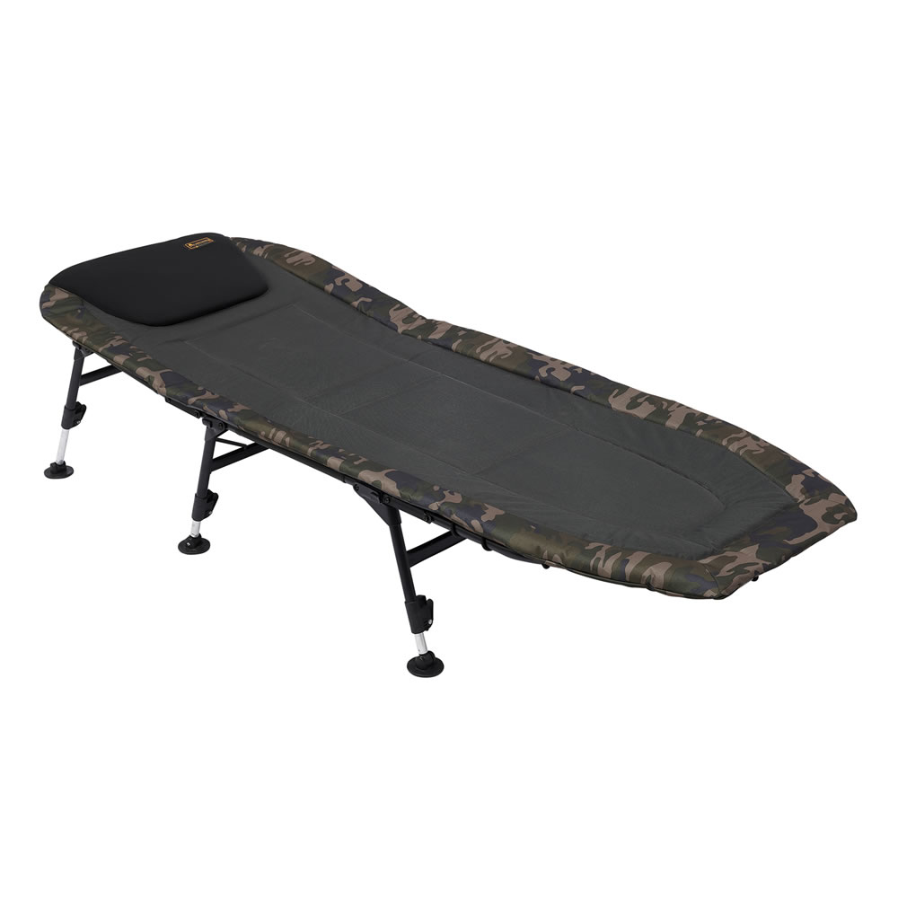 Řada lehátek Avenger je stylová a funkční. Lehátka jsou navržena s úplně plochým rámem pro dokonalý komfort a pohodlí. Bohatě polstrovaná matrace je k rámu připevněna pomocí ultra pevných gum, které jsou odolné vůči povětrnostním vlivům, změnám teplot apod. Matrace je z decentně zeleného voděodolného materiálu 600D, zatímco okraje jsou ve stylovém camo vzoru Avenger. Systém skládacího plochého rámu s dvojitým sklopením je velice kompaktní pro snadný transport a umožňuje ponechání většiny spacáků na lehátku při balení. Všechny nohy jsou plně nastavitelné a osazené otočnými patkami proti zaboření.