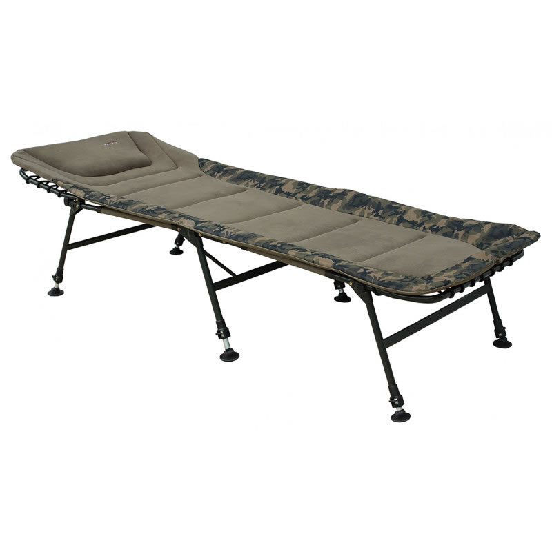 Ploché lehátko Promaster Camo poskytuje velmi vysoký komfort, který bude konkurovat i spaní, které máte doma. Promaster Camo je šestinohé ploché lehátko (bez kloubu) se stabilitou osminohého lehátka. Unikátní rozložení tří páru noh umožňuje sezení po celé délce lehátka. Nohy mají aretaci proti sklopení. Střed matrace je s micro fleece a po obvodě camo 600D Oxford a to celé vyplněno termoizolační pěnou. Matrace s polštářem je na konstrukci v prostřední části vyztužena pro větší pohodlí. V transportní poloze je lehátko fixováno popruhem.