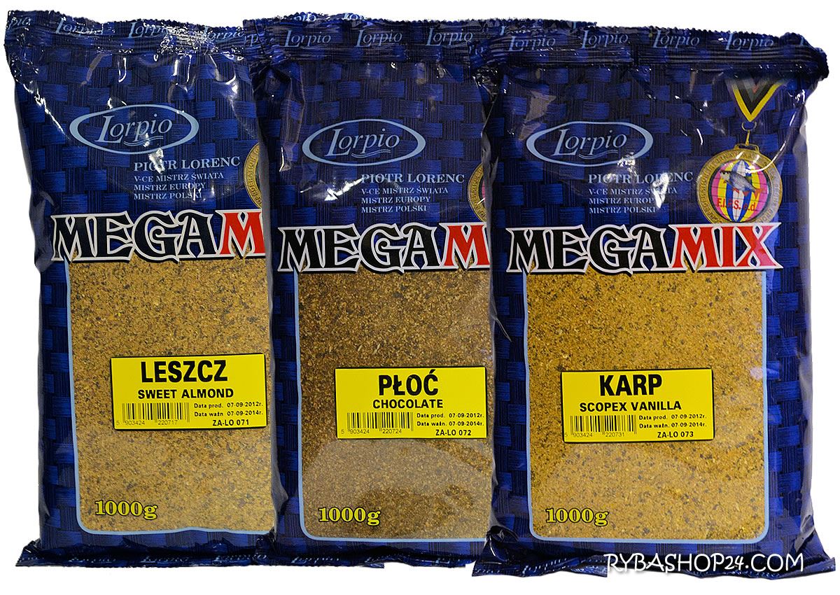 Lorpio Megamix je od uvedení na trh jednou z nejproávanějších vnadících a krmítková směsí, rybáři ceněna pro svou univerzálnost. Je stejně účinná na klidných vodách tak i na tekoucích dynamičtějších řekách. Směs je napuštěna vonnými oleji. Láká různé druhy ryb a stimuluje je k intenzivnímu krmení. Tato vnadící směs vám zaručí úspěch.