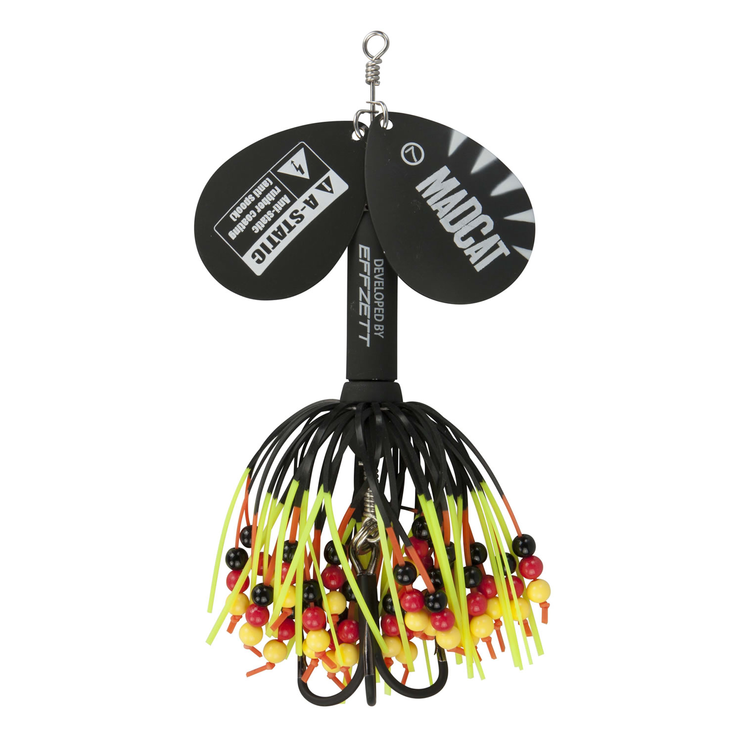 Druhá generace třpytek MADCAT® Rattlin’ Teasers se dvěma lopatkami pro ještě více vibrací. Speciální antistatický gumový potah minimalizuje elektrické pole, které plaší sumce. Upozornění: Antistatický gumový potah se může vlivem používání opotřebovat.