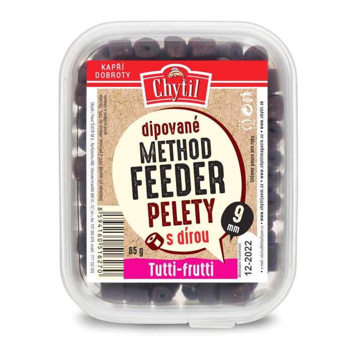 Dipované pelety s dírkou pro snadné nastražení pod háček. Peleta je prodipovaná důkladně, po celém svém průměru a díky tomu je výrazně atraktivním soustem po celou dobu svého působení ve vodě.