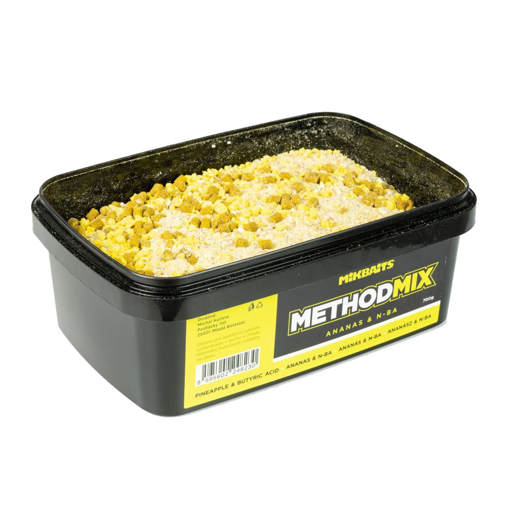 Method mixy jsou vysoce atraktivní vnadící směsi s mnoha způsoby použití. Lze je použít do vnadících raket, PVA punčoch, method krmítek, feeder košíků i klasických krmítek, na vytváření vnadících koulí a podobně. Jejich složení je přizpůsobeno k lovu kaprů či amurů. Obsahují chuťově a čichově výrazné složky, ale i živočišné produkty, jako je krill, enzymatické rybí moučky, játrové extrakty a další. Hrubší strukturu dotváří anglická vločka a mikro pelety. Mix zvlhčete vodou, tekutou potravou, dipem nebo boosterem, nechejte nasáknout a poté můžete použít. Ve vodě okamžitě pracuje, rozpadá se a láká tím ryby k okamžitému záběru.