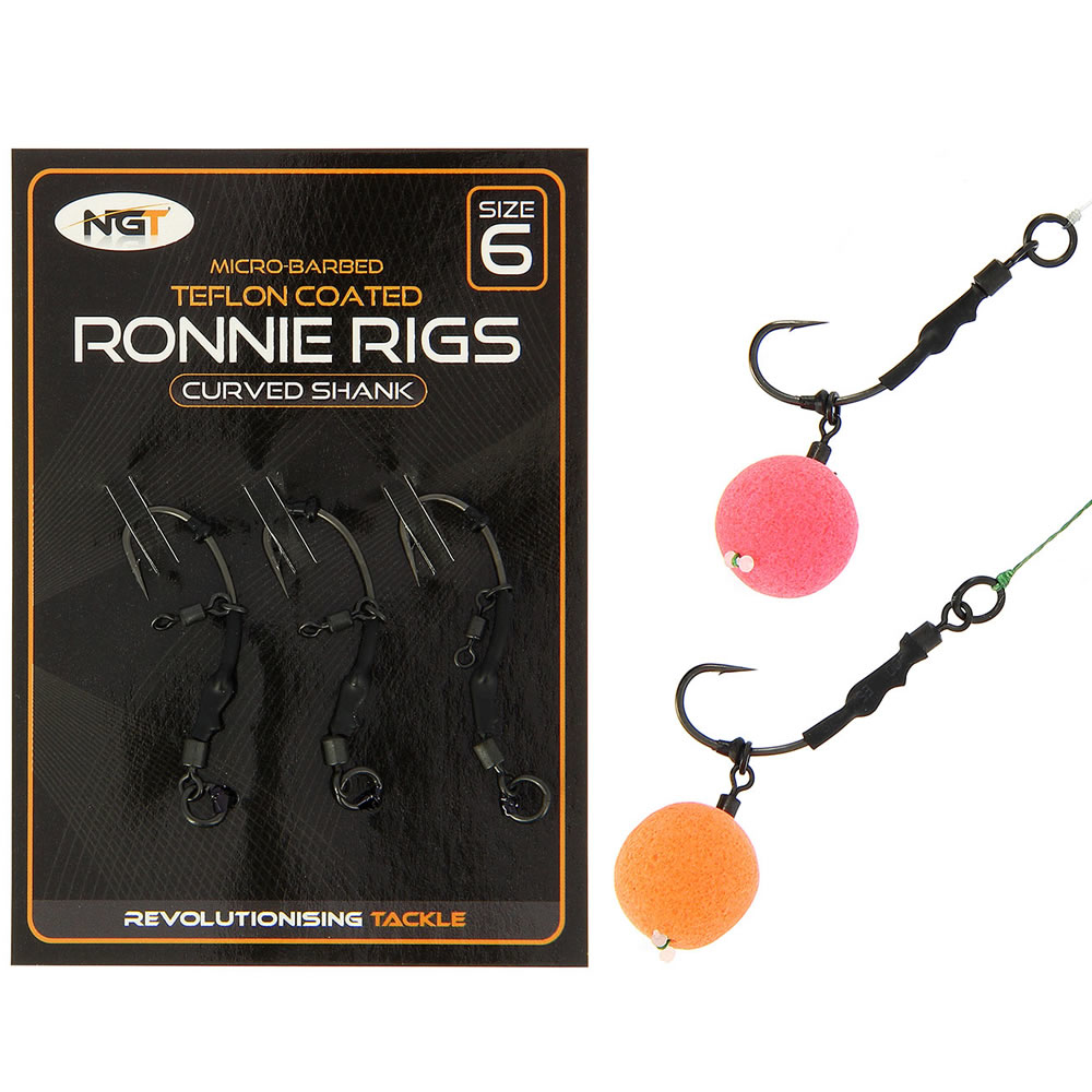 Zcela nová, efektivní montáž od anglické značky NGT. Jedná se o montáž určenou především pro lov s plovoucí nástrahou těsně u dna. S Ronnie Rigem bude váš lov vždy o level úspěšnější. Balení obsahuje tři hotové montáže. Podstatou montáže je velmi ostrý háček, který pomocí otočného obratlíku (nástraha je volně pohyblivá) několikanásobně zvýší pravděpodobnost zapíchnutí háčku v rybí tlamě. Dalším prvkem montáže je obratlík na háčku s pojezdnou zarážkou pro vymezení prostoru pro nástrahu.