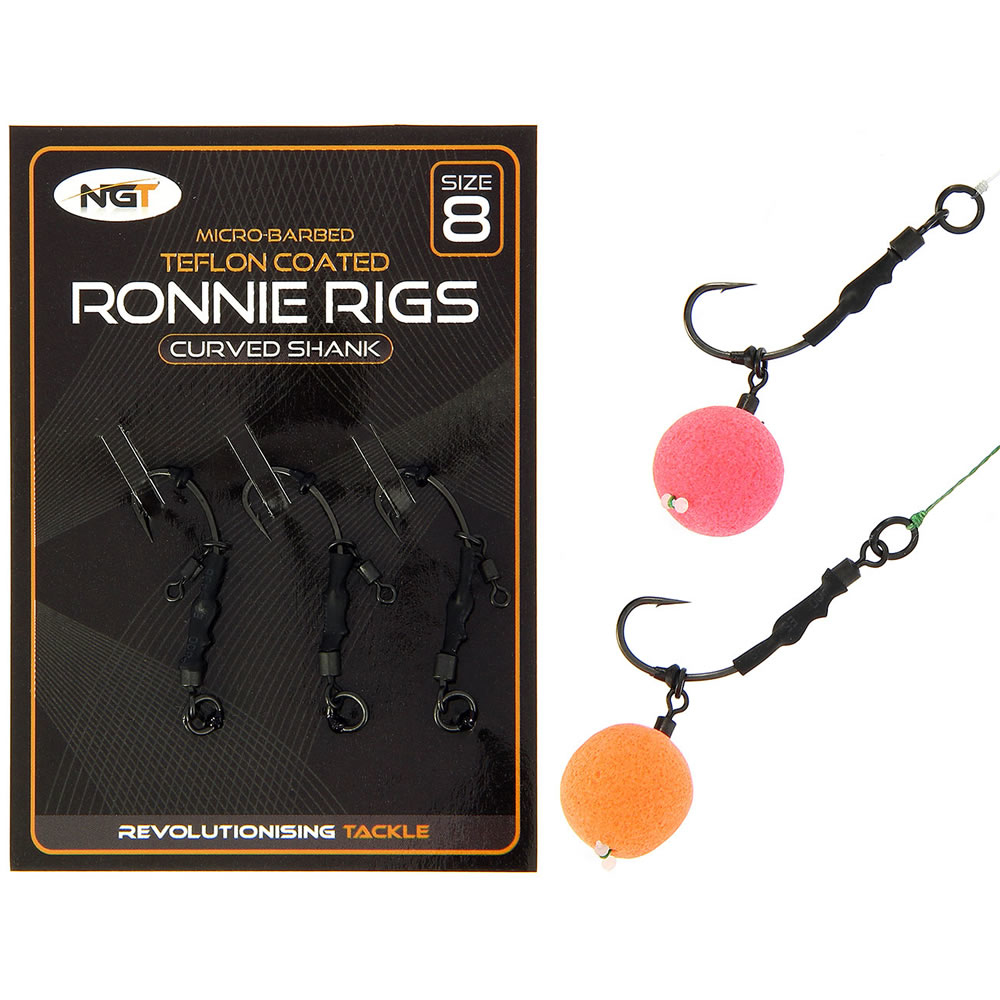 Zcela nová, efektivní montáž od anglické značky NGT.  Jedná se o montáž určenou především pro lov s plovoucí nástrahou těsně u dna. S Ronnie Rigem bude váš lov vždy o level úspěšnější. Balení obsahuje tři hotové montáže. Podstatou montáže je velmi ostrý háček, který pomocí otočného obratlíku (nástraha je volně pohyblivá) několikanásobně zvýší pravděpodobnost zapíchnutí háčku v rybí tlamě. Dalším prvkem montáže je obratlík na háčku s pojezdnou zarážkou pro vymezení prostoru pro nástrahu.