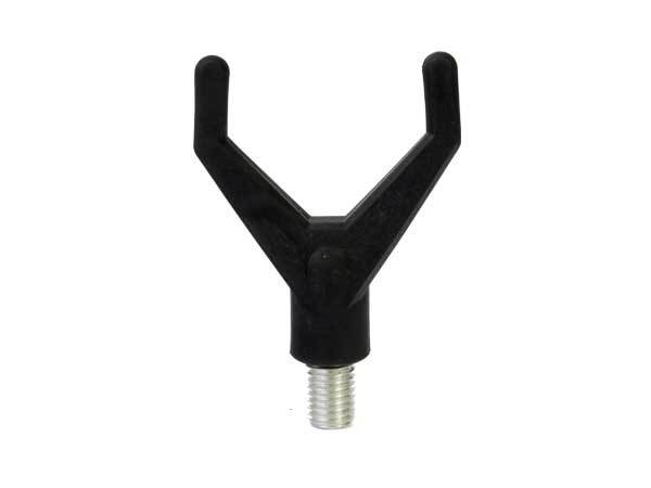 Zadní rohatinka z měkké gumy, která díky své pružnosti a tvaru pevně sevře rukojeť prutu. To je klíčové při prudkých záběrech, aby prut nevyletěl ze stojanu.