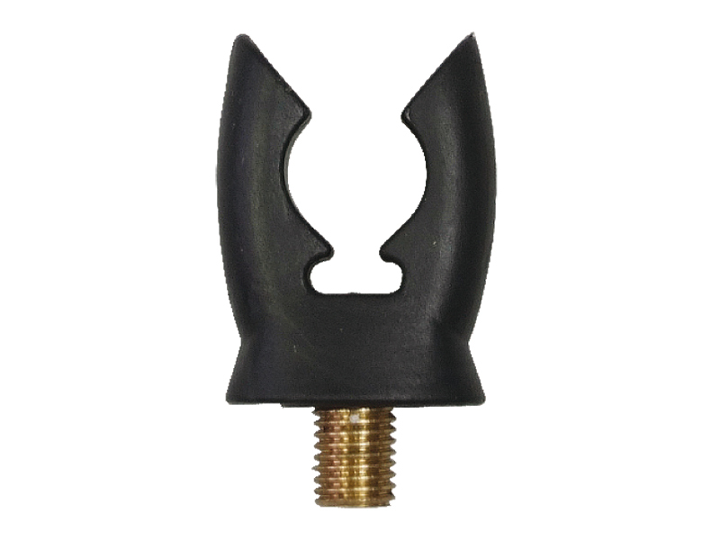 Tato zadní rohatinka je vyrobena z pružné, ale pevné gumy (pryže). Její hlavní výhodou je vysoká přilnavost (protiskluzovost). Při prudkém záběru nebo při lovu ve strmém úhlu ("špičky nahoru") guma pevně drží rukojeť prutu a brání jeho sklouznutí.
