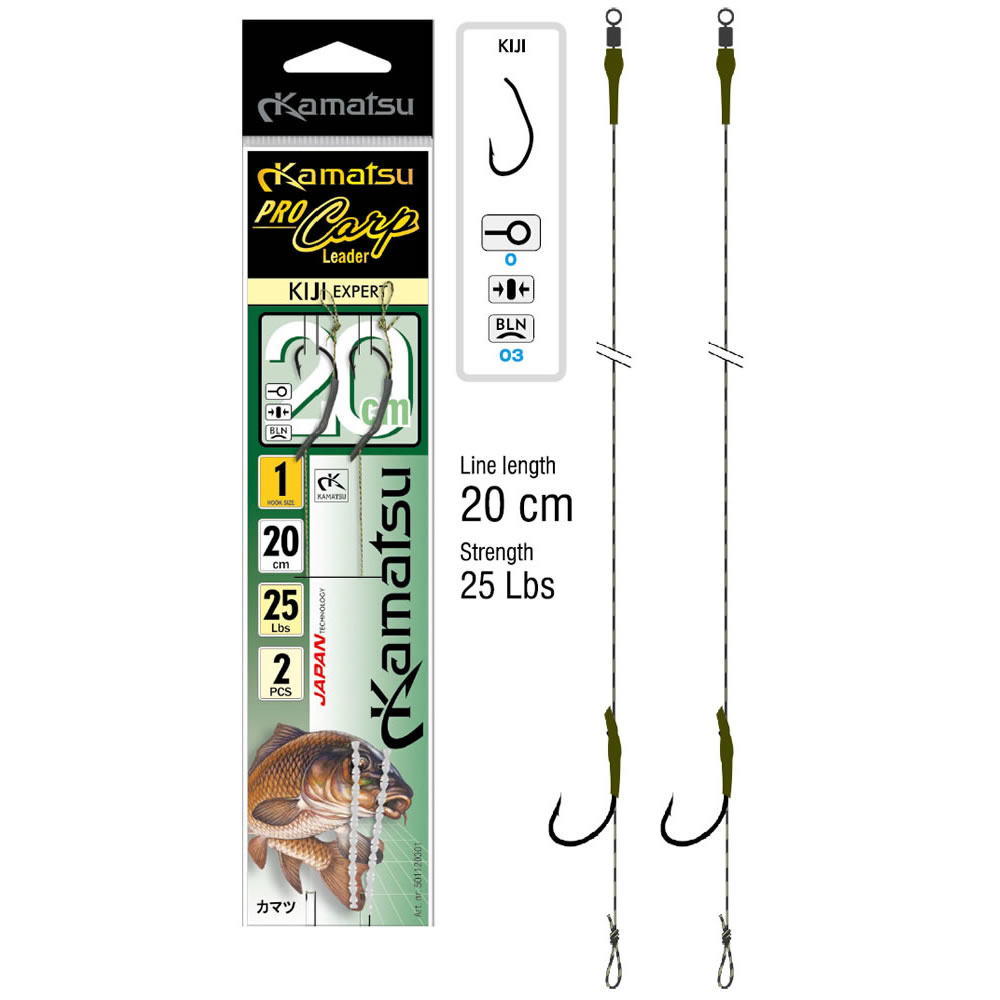 Speciální návazce určené zejména pro lov kaprů metodou "na vlas". Byly testovány na mnoha ulovených kaprech v celé Evropě a fungovaly dobře za všech podmínek. Návazce Kamatsu Pro Carp jsou vynikající volbou pro všechny rybáře lovící velké kapry díky použití nejkvalitnějších komponent. Šňůra a uzel návazce zaručují, že návnada vypadá přirozeně a není podezřelá ani pro ty nejopatrnější ryby. K montáži byly použity pouze vybrané háčky a obratlíky Kamatsu, aby se předešlo nepříjemným překvapením při rybolovu. Háčky jsou vázány nejúčinnější metodou - takzvaným „bezuzlovým uzlem“. Obratlíky jsou navázány zvláštním uzlem který rozloží zatížení na celý uzel, spíše než na bod dotyku s obratlíkem. Návazce jsou postaveny na klesajících šňůrkách barevně uzpůsobených pro zaručení maskování u většiny typů dna. Ideální pro perfekcionistické rybáře, kteří mají rádi své hobby.
