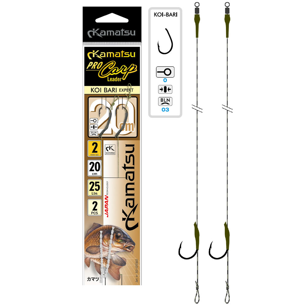 Speciální návazce určené zejména pro lov kaprů metodou "na vlas". Byly testovány na mnoha ulovených kaprech v celé Evropě a fungovaly dobře za všech podmínek. Návazce Kamatsu Pro Carp jsou vynikající volbou pro všechny rybáře lovící velké kapry díky použití nejkvalitnějších komponent. Šňůra a uzel návazce zaručují, že návnada vypadá přirozeně a není podezřelá ani pro ty nejopatrnější ryby. K montáži byly použity pouze vybrané háčky a obratlíky Kamatsu, aby se předešlo nepříjemným překvapením při rybolovu. Háčky jsou vázány nejúčinnější metodou - takzvaným „bezuzlovým uzlem“. Obratlíky jsou navázány zvláštním uzlem který rozloží zatížení na celý uzel, spíše než na bod dotyku s obratlíkem. Návazce jsou postaveny na klesajících šňůrkách barevně uzpůsobených pro zaručení maskování u většiny typů dna. Ideální pro perfekcionistické rybáře, kteří mají rádi své hobby.