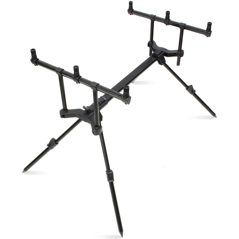 Anglická značka NGT přichází s novým modelem velmi variabilního a stabilního stojanu, který lze přizpůsobit v jakémkoliv terénu. Tento malý a velmi povedený stojan ocení především vyznavači UK stylu rybolovu. Je vyroben z lehké hliníkové slitiny v matně černém provedení. Mezi hlavní přednosti tohoto stojanu patří posuvné přední a zadní páry nohou, jejímž posunutím do středové části změníme těžiště stojanu a z klasického rodpodu získáme čtyřnohý tripod. Samozřejmostí je výškové nastavení hrazd a teleskopických nohou. Délku stojanu lze regulovat středovým klipem. Na hrazdách najdeme šroubovací matice s kvalitním závitem pro přesné dotažení a nasměrování signalizátoru záběrů. Tento stojan nabízí velmi dobrý poměr ceny a kvality.