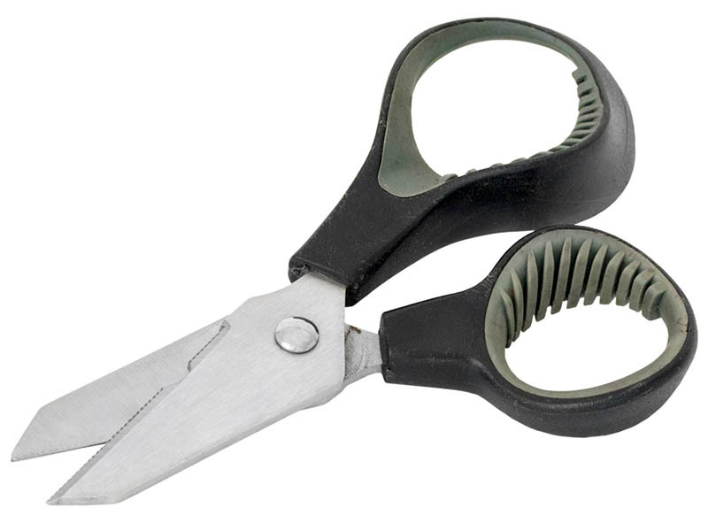 Robustní a spolehlivé nůžky pro střihání všech typů pletených šňůr. Vyrobeny z vysoce odolné oceli, která nepodléhá korozi ani ve slané vodě. Čepele s mikro-zoubkováním (6 cm) zajišťují čistý řez bez třepení.