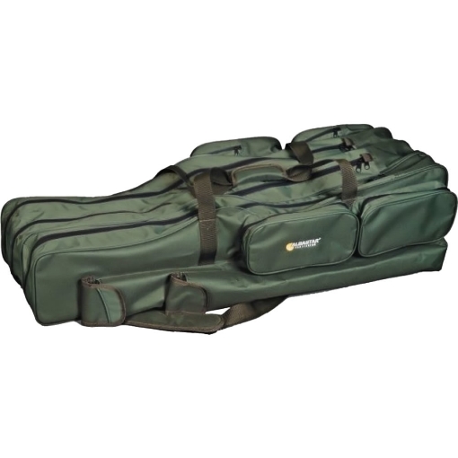 Tříkomorové skvěle zpracované a promyšlené pouzdro zhotovené z velmi odolného vodoodpudivého materiálu. Oddělené komory, uzaviratelné kvalitními zipy, dokonale chrání nářadí a poskytují dostatek prostoru i pro kompletně sestavené pruty. Výbava pouzdra zahrnuje šest postraních kapes včetně kapes pro podběrák, vidličky, rybářské krabičky, atd. Pohodlné popruhy usnadňují nošení v ruce i na zádech.