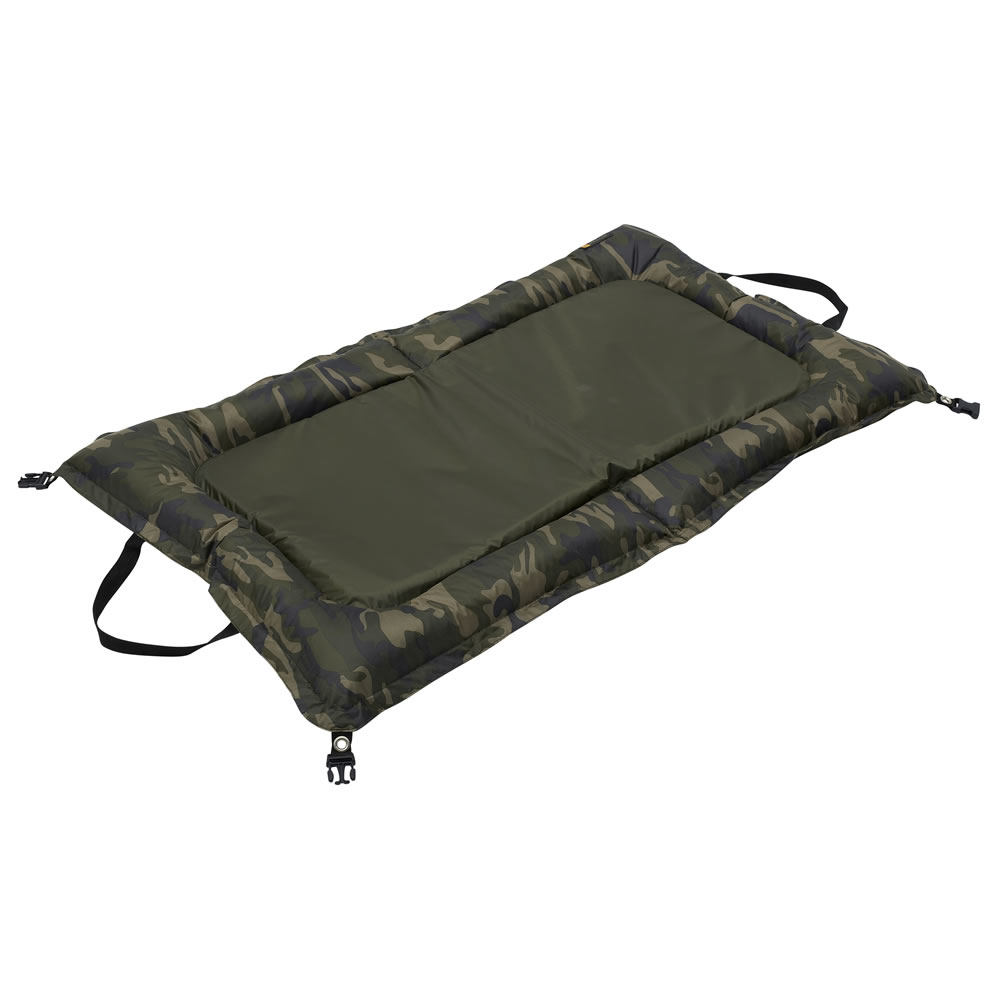 Bohatě polstrovaná pěnová matrace v kombinaci s vyvýšeným camo okrajem, který je vyplněný polystyrenovými kuličkami. Právě tento vyvýšený okraj zajišťuje, že čilé ryby jsou vždy zcela chráněné.