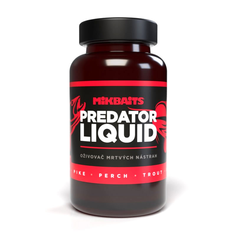 Zcela ojedinělý je Liquid PREDATOR – Oživovač mrtvých nástrah. Je určen především pro chytání candátů na mrtvou rybku na položenou, ale lze použít na umělé nástrahy a je účinný i na ostatní dravce. Namočením do této tekutiny výjimečně zvýšíte atraktivitu a čichovou stopu všech vašich mrtvých návnad. Tento produkt výrazně zvyšuje útok dravce tím, že stimuluje jejich agresivitu. S produkty PREDATOR učiníte své návnady ještě atraktivnější, neboť jim dodáte silnou vůni a velkou přitažlivost díky aminokyselinám a dalším složkám, které je tvoří.