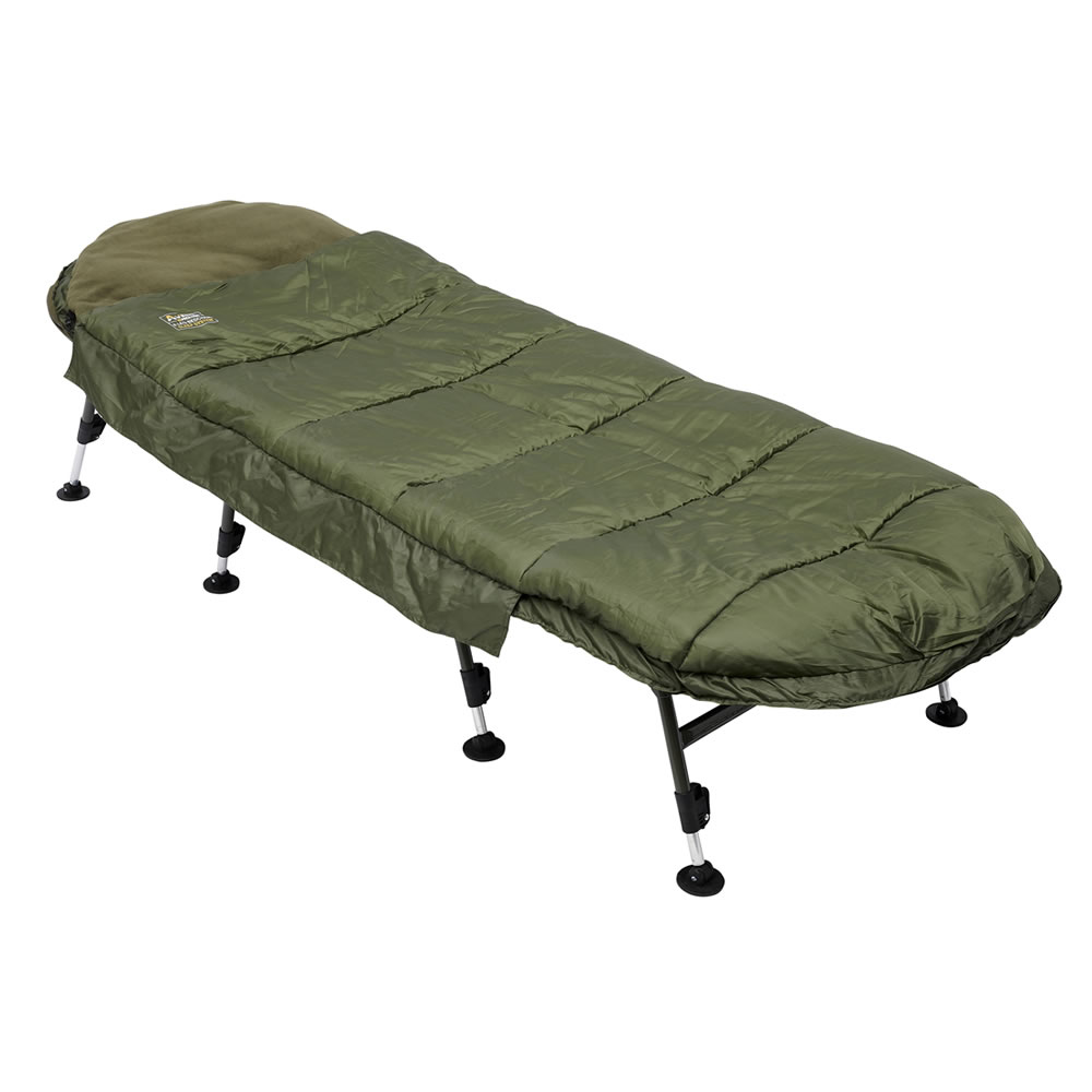 Spací systém Avenger, který se skládá z našeho lehátka Avenger s 6 nebo 8 nohami a naším novým 3-sezonním spacákem Avenger. Spacák je k lehátku bezpečně připevněn dlouhým, robustním a odolným zipem a v případě potřeby je možné jej odejmout (například pro čištění). Podšívka z termo fleecu a vícevrstvá konstrukce z dutých vláken nabízí to nejlepší, z hlediska komfortu, izolace a funkčnosti. Spací systém je pokryt ultra měkkým, nešustícím a velmi odolným polyesterem, který je voděodolný. Zip je překryt klopou proti větru, která zajišťuje nulový průvan a maximální komfort během spánku.
