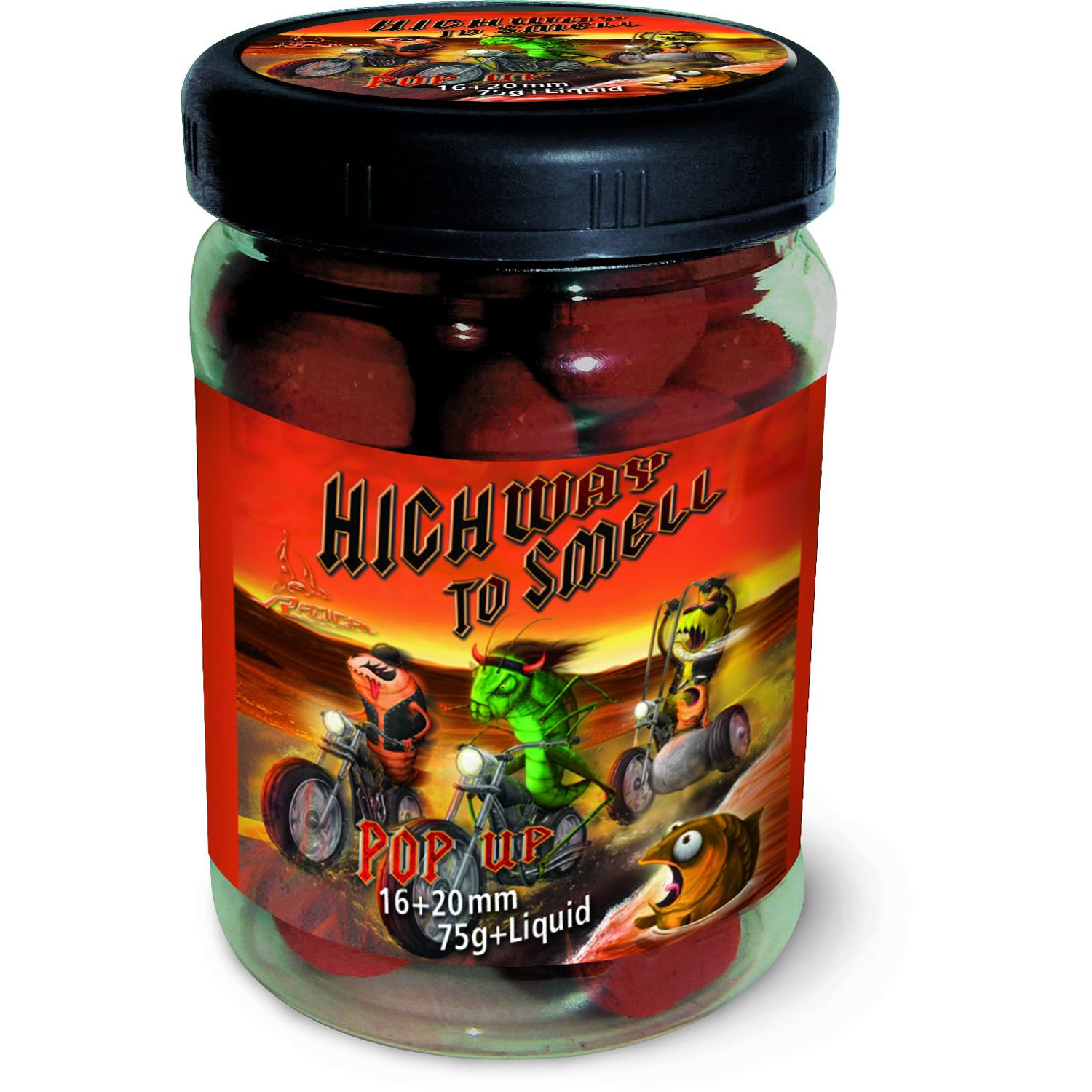 Pevnější a mimořádně dlouho plovoucí Pop Up boilie, které se perfektně hodí k boilie řady Highway to Smell . Dva průměry v dóze, tím pádem můžete Pop Up zvolit vždy v odpovídající velikosti. S přiloženou ampulkou tekutého posilovače lze Pop Up´s dodatečně posilnit.