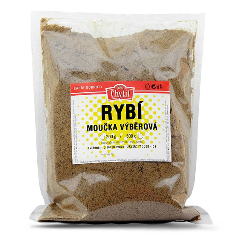 Velmi atraktivní a nejpouživanější moučka s vysokým obsahem proteinů. Sama o sobě aromatická, jedna z výchozích surovin pro namíchání dobrého mixu. Není pojivá. Dobře se kombinuje s dalšími rybími moučkami ve směsi. Neobsahuje žádné zbytky hlav a kostřiček jako rybí moučka s proteinovým podílem 64%.
