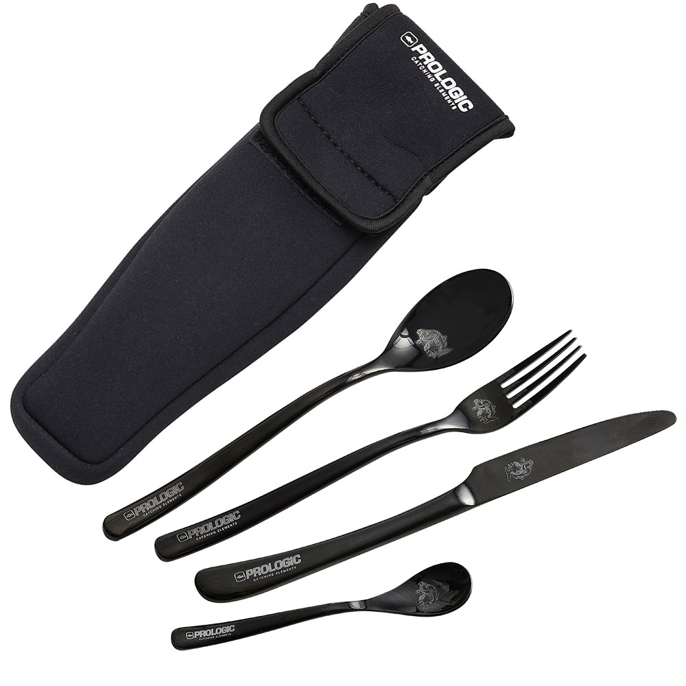 Co je jednou z nejlepších věcí na dlouhodobých kaprařských výpravách? Samozřejmě, vychutnání si pečlivě připraveného jídla na břehu vody. A můžete to udělat stylově a pohodlně díky naší sadě příborů Blackfire. Tato sada z nerezové oceli obsahuje nůž, vidličku, lžíci a čajovou lžičku. Dodává se v neoprenovém pouzdru. Příbory jsou velice odolné, mají stylovou povrchovou úpravu Blackfire a laserem leptané detaily.