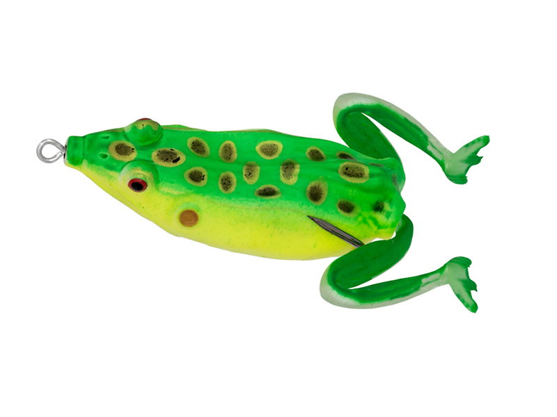 Barevná varianta modelu Jumping Frog. Díky měkkému dutému tělu se při záběru zmáčkne a odhalí ostrý dvojháček, což zajišťuje úspěšný zásek. Perfektní zbraň na leknínová pole.